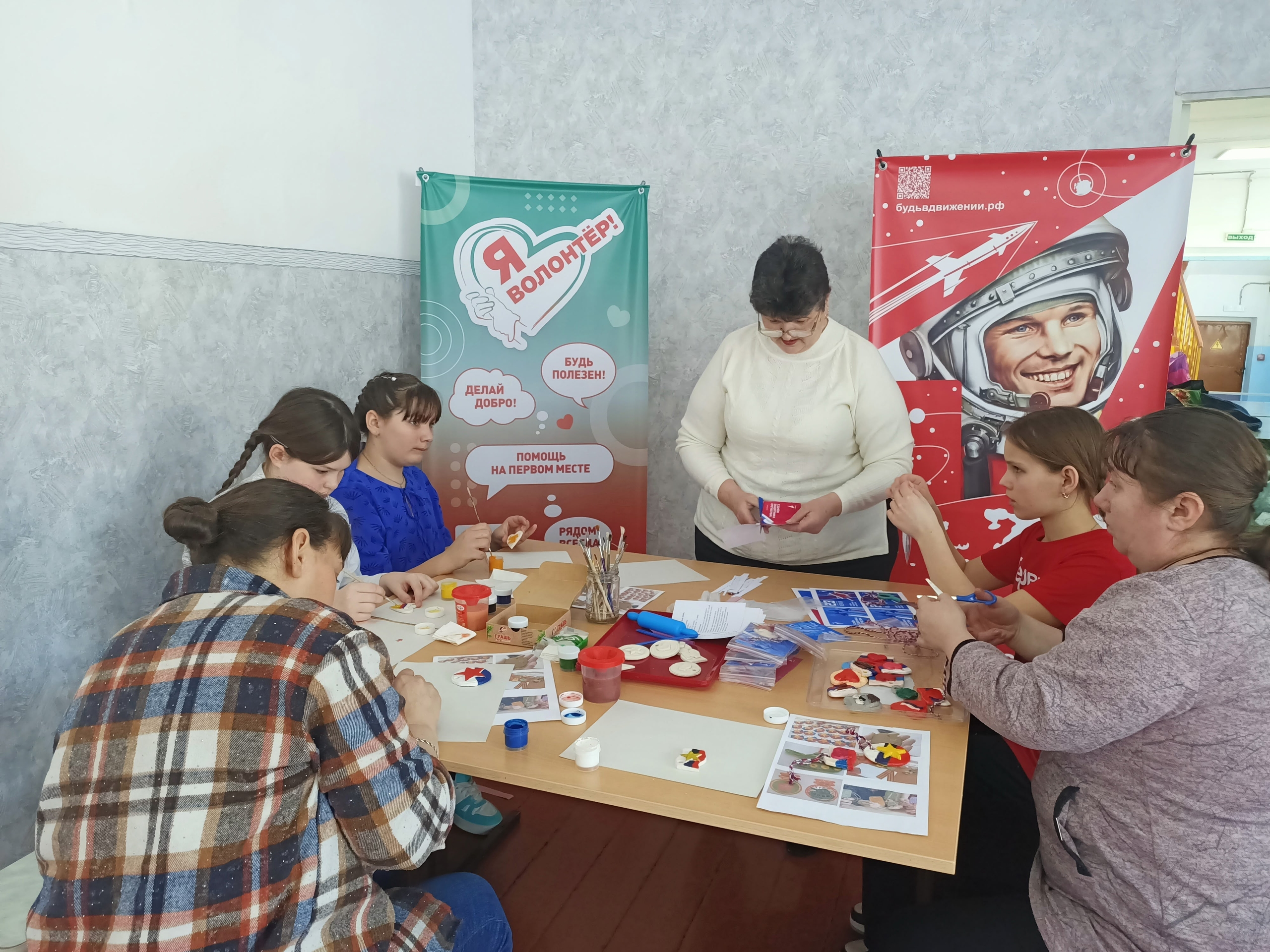 Завершением дня стали мастер-классы, где школьники вместе с родителями могли проявить свои творческие способности, изготовив праздничные открытки и расписав обереги для наших бойцов, несущих службу в зоне СВО.