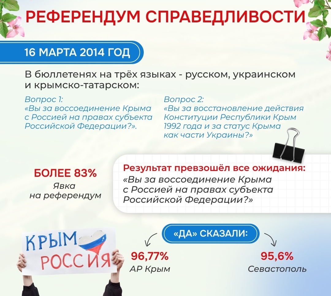 18 марта в России отмечается особый праздник — День воссоединения Крыма с Российской Федерацией. Этот день стал символом объединения двух регионов, которые после референдума 16 марта 2014 года стали частью России.